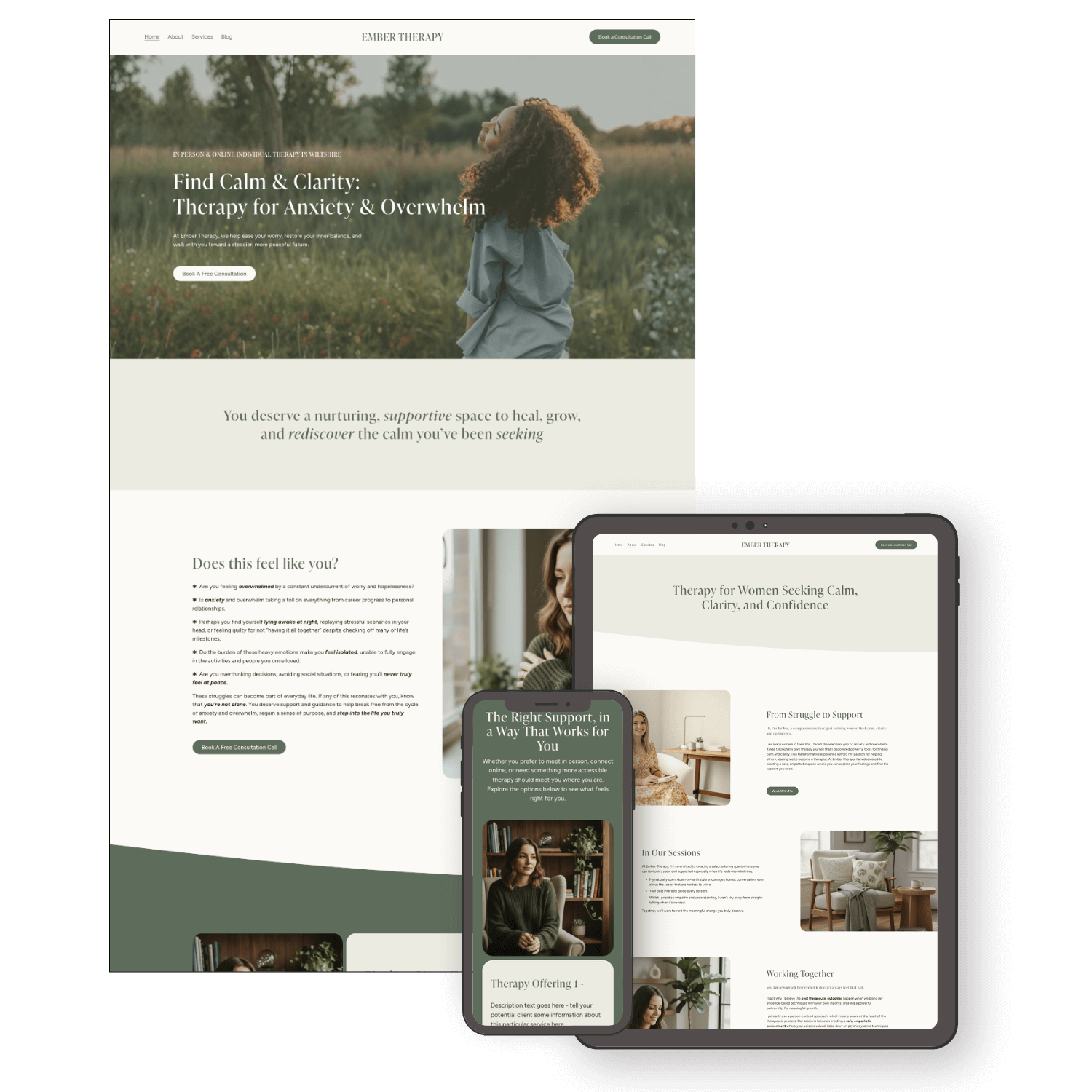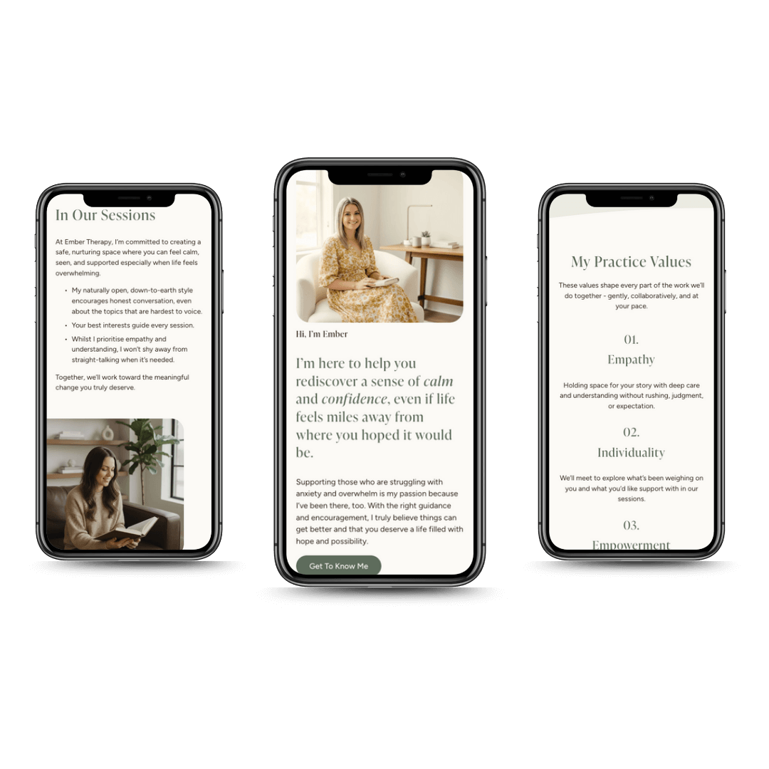 Ember is designed for therapists and counsellors who want a website that feels gentle, supportive, and emotionally reassuring from the first scroll.