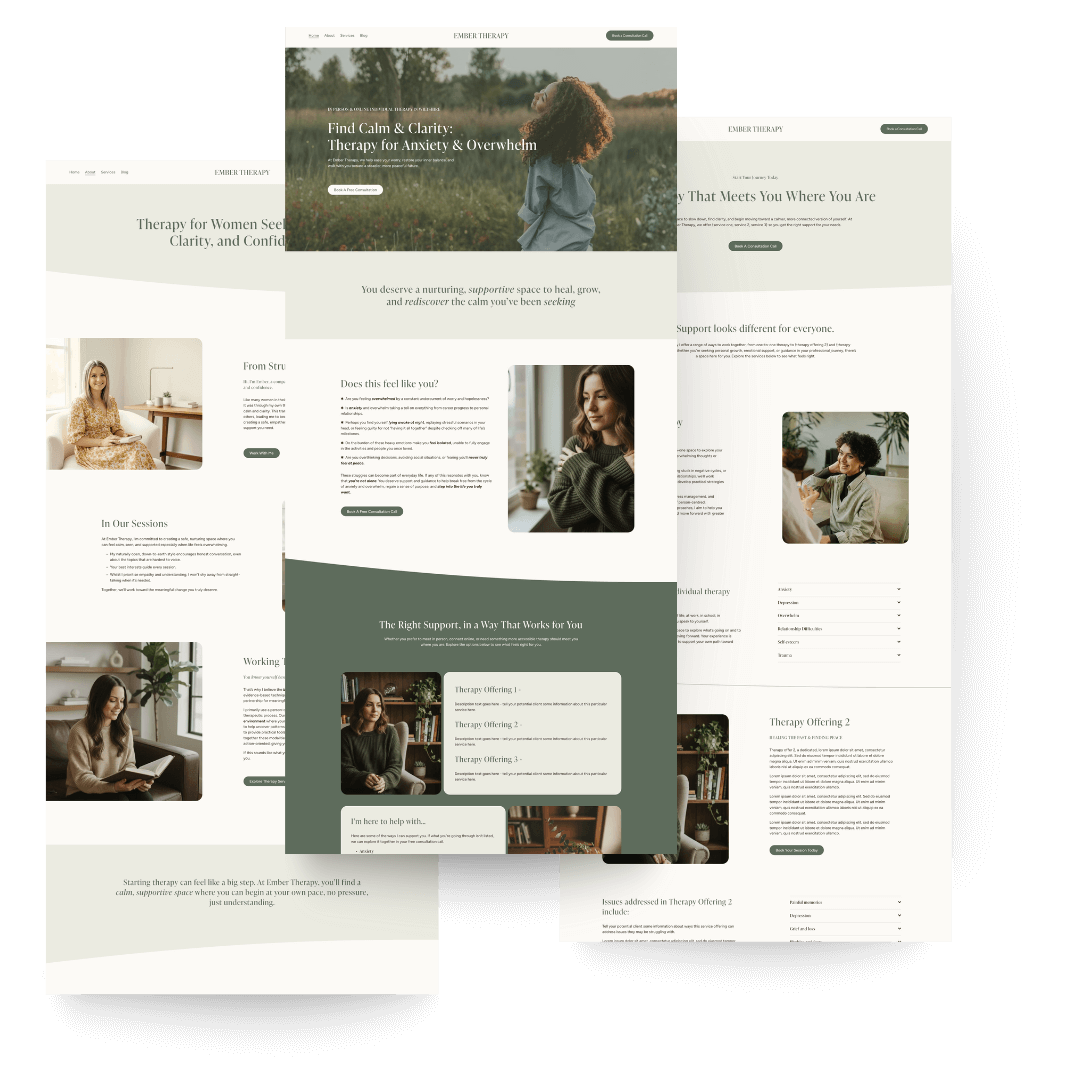 The templates are designed specifically for therapists, with layouts that build trust and guide visitors naturally toward becoming clients.
