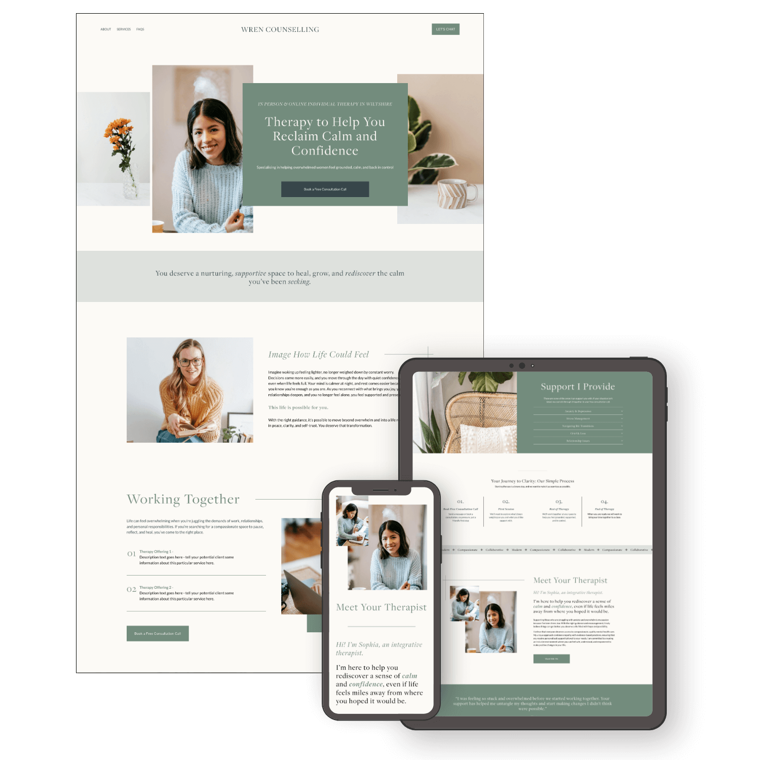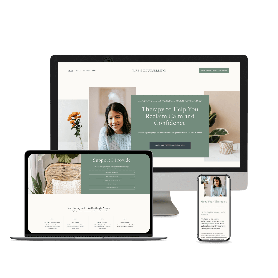 Wren is designed for therapists and counsellors who want a website that feels calm, considered, and quietly reassuring from the first scroll.
